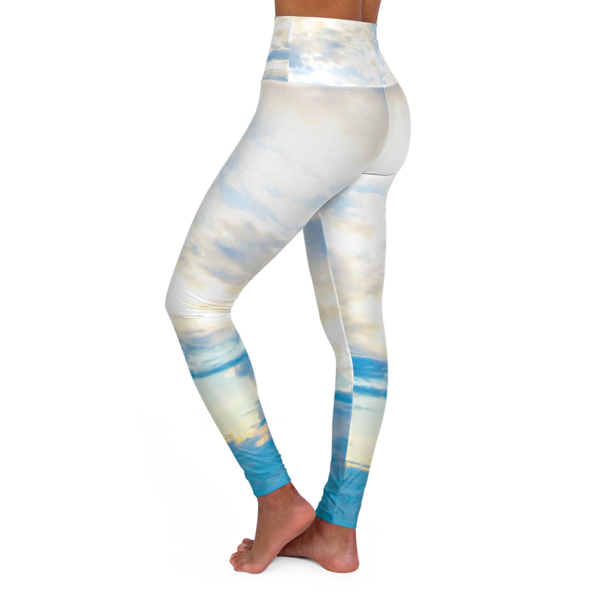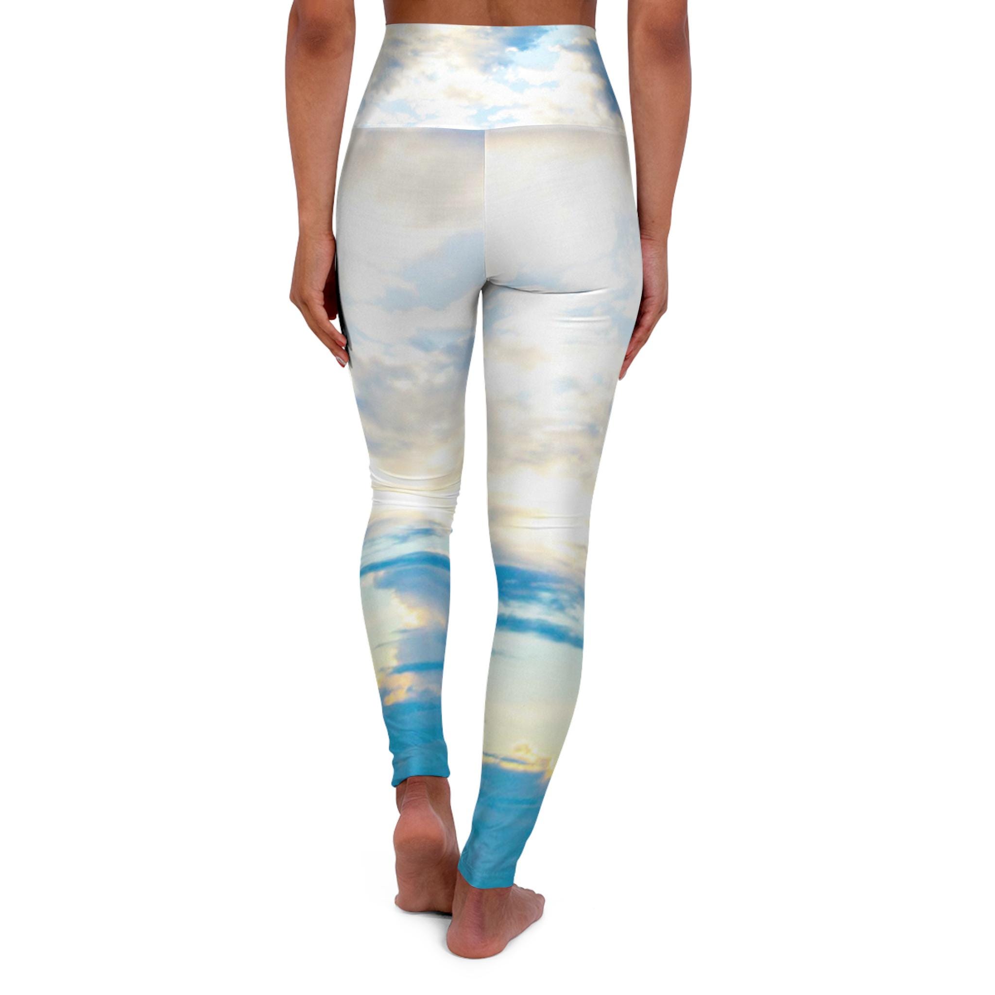 These Blue Ice Skinny Fitting High-Waisted yoga leggings will take you from workout to store run in comfort and style. This design was created on Siesta Key in Sarasota, FL.on a beautiful blue sky day! The different shades of blue that the sky offered that day were beautiful.