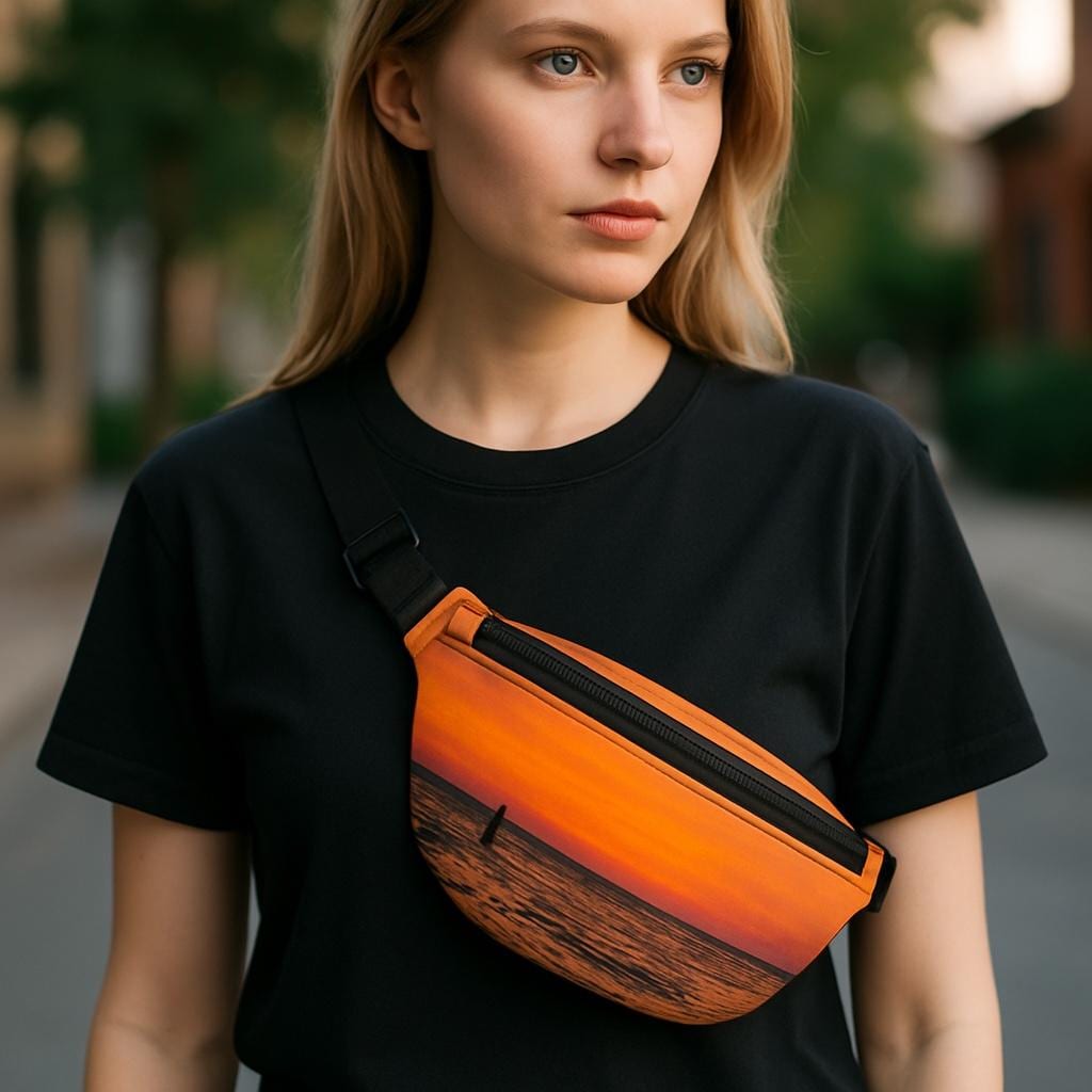 Sunset-Inspired Crossbody Belt Bag – Boho Fanny Pack with 3 Pockets