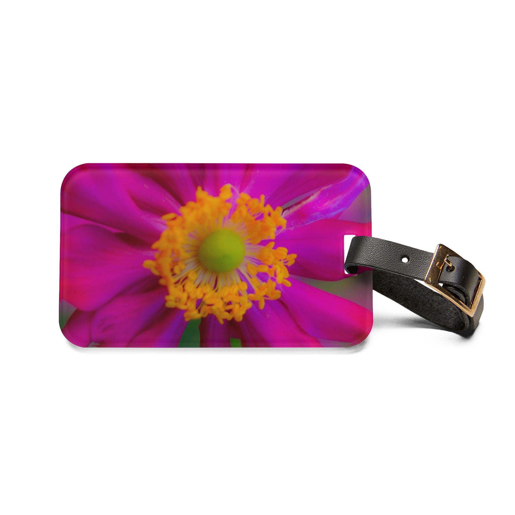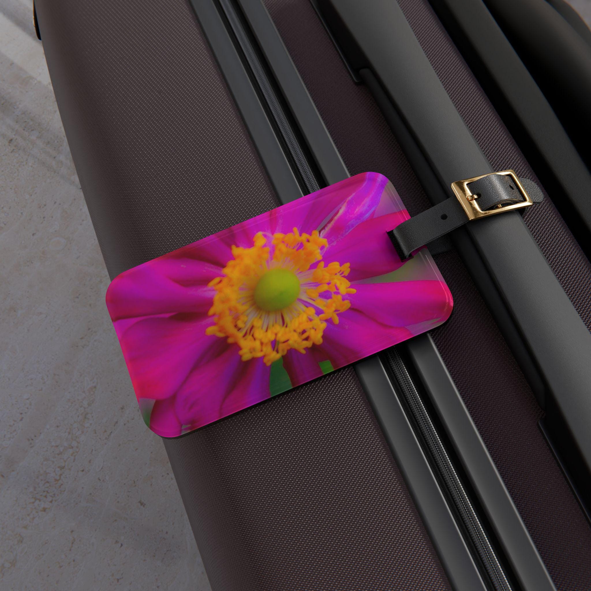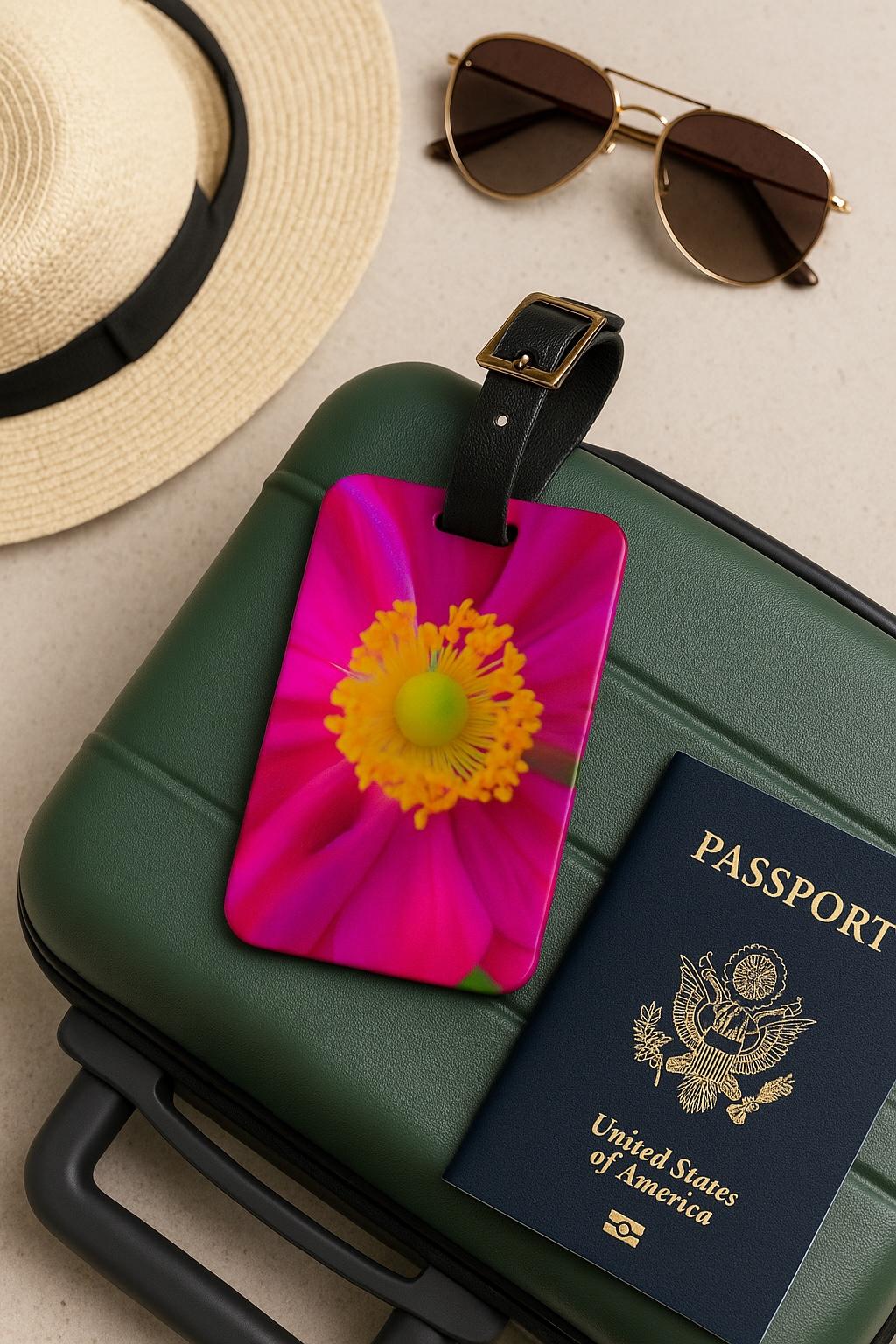 Pink Floral Flower Power Pop Luggage Tag, perfect for adding a touch of style to your travel accessories. Vibrant colors and durable material make it ideal for frequent travelers and those who love to personalize their belongings. Great for holiday and vacation seasons.