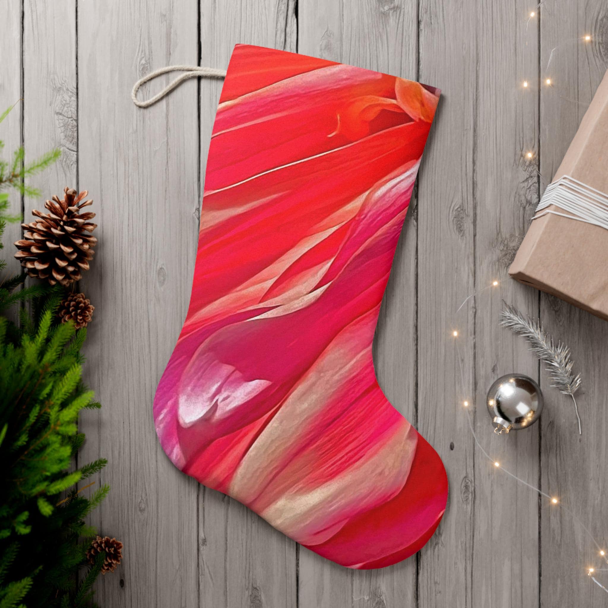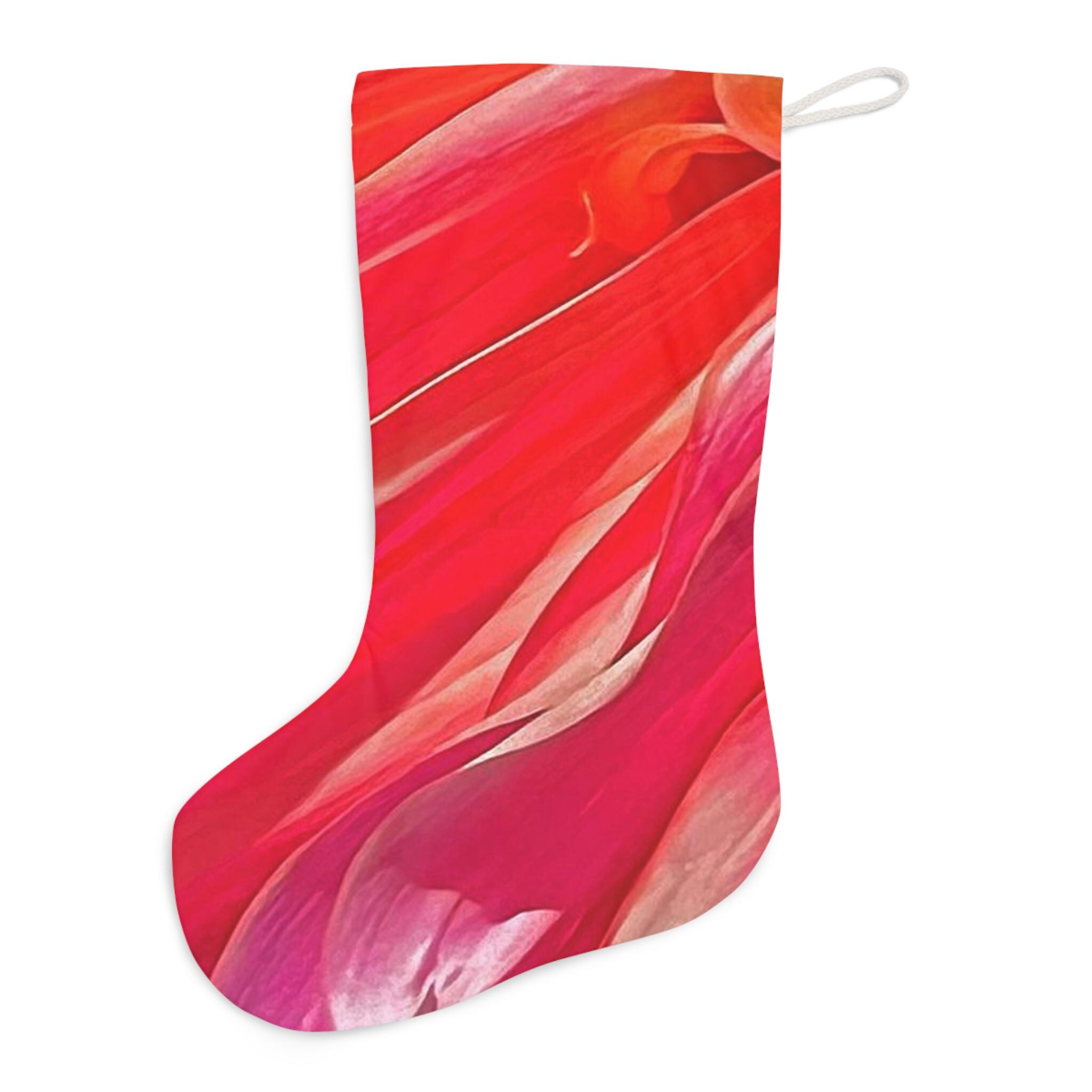 This Floral Santa Stocking is the perfect addition to your Christmas decorations. Made of 100% faux suede, it is soft to touch and spacious enough to hold plenty of presents. The vibrant colors and all-over print give it a festive look that will brighten up your holiday decor. With a hanging loop for easy display, this stocking is a must-have for anyone looking to add a touch of Christmas cheer to their home.