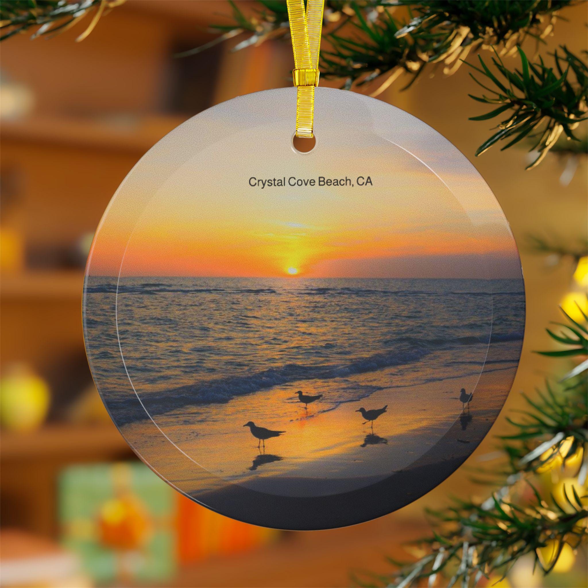 Golden Glow Ocean Inspired Glass Christmas Ornament, perfect for adding a touch of elegance and holiday cheer to your Christmas tree. Suitable for anyone looking to enhance their holiday decor with a luxurious and festive vibe. Ideal for Christmas and winter celebrations.