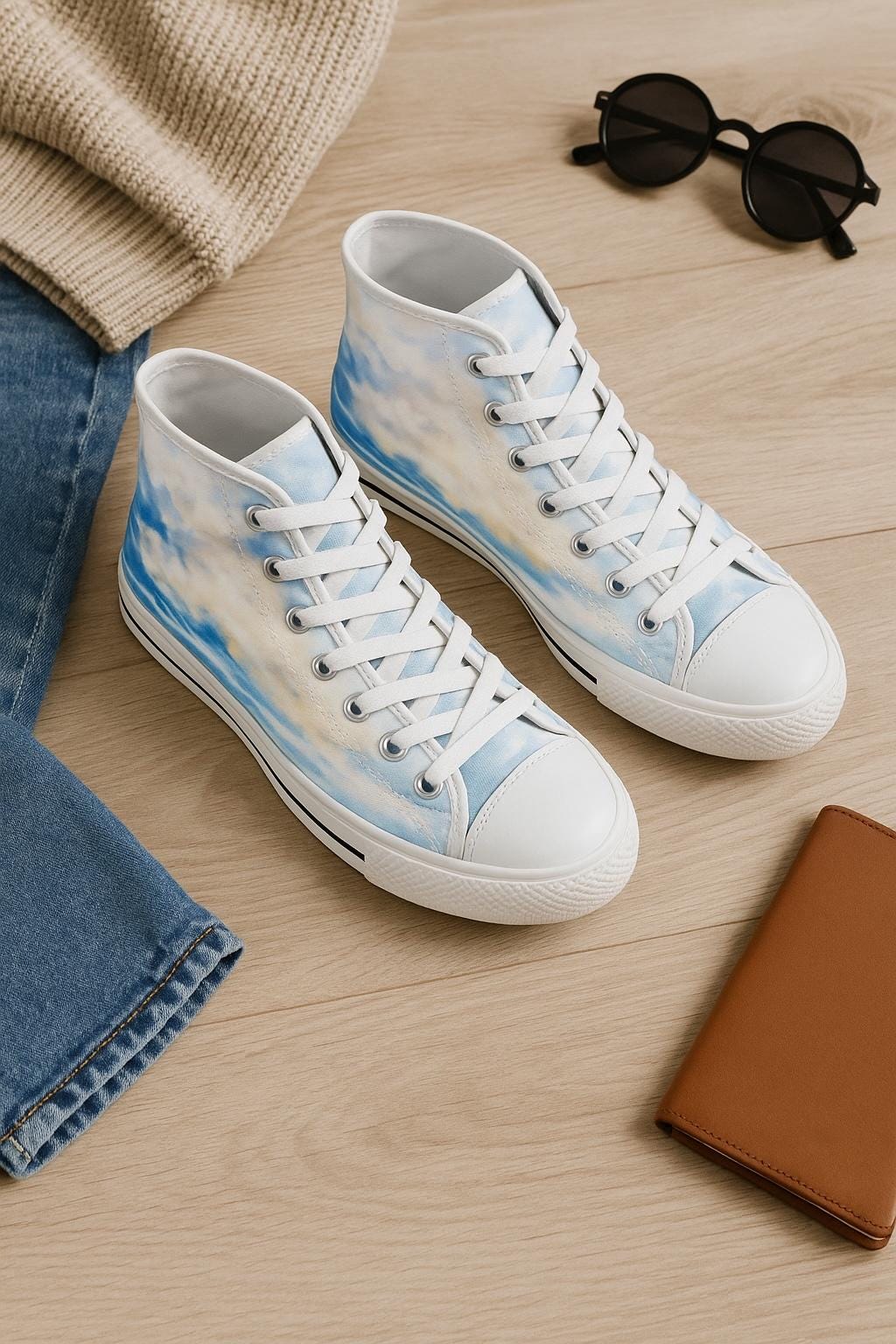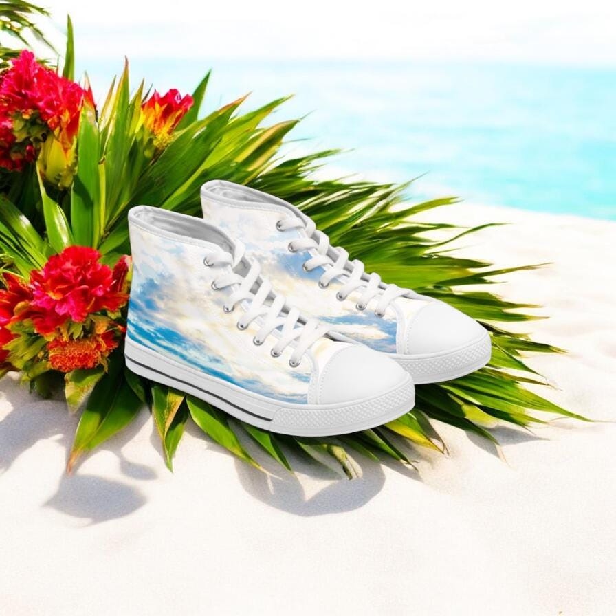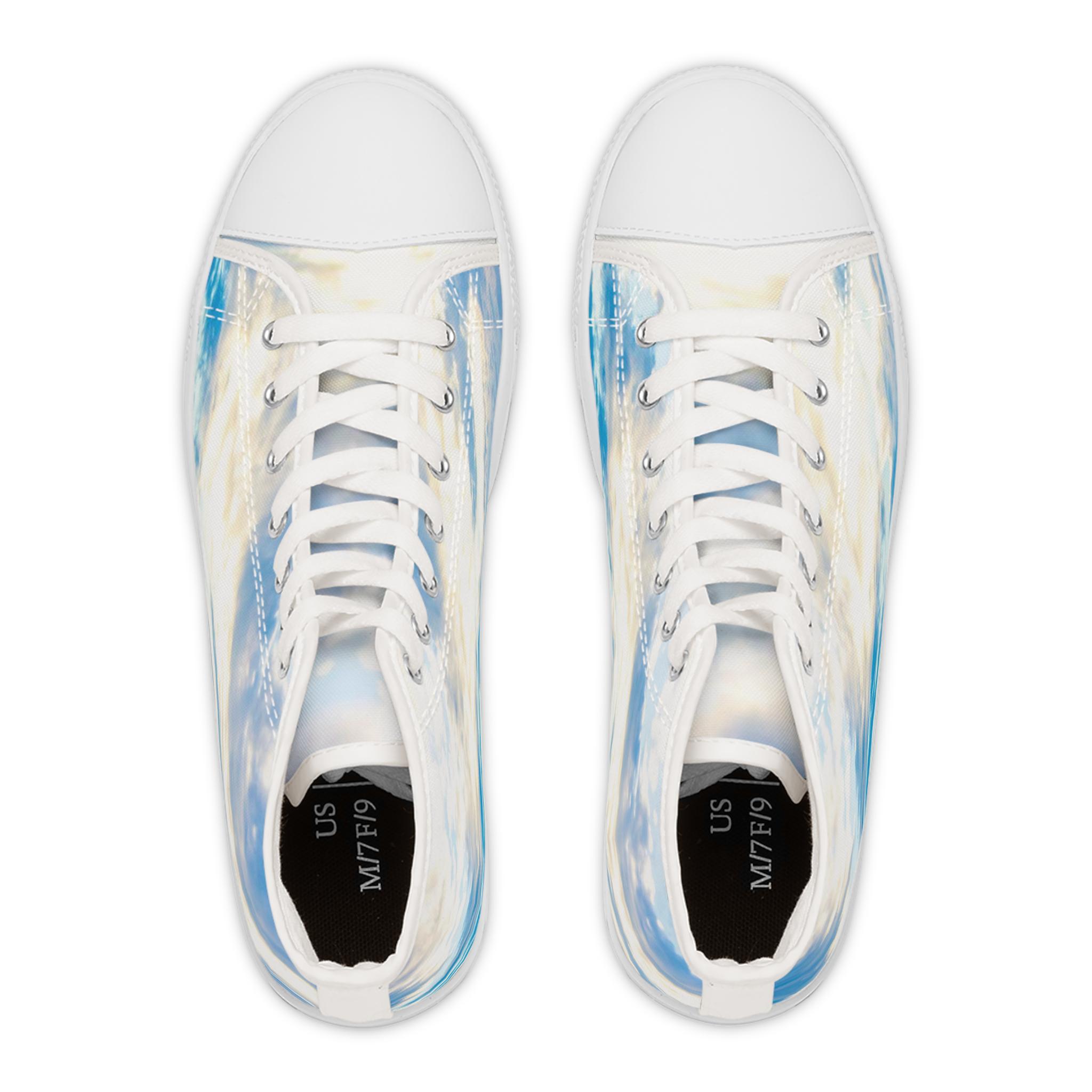 Step into the calming ocean blue with these Women's High Top Sneakers. The blue and ivory design gives off a sporty and adventurous vibe, perfect for active women looking for style and comfort. Great for beach vacations, summer outings, and casual hangouts with friends.