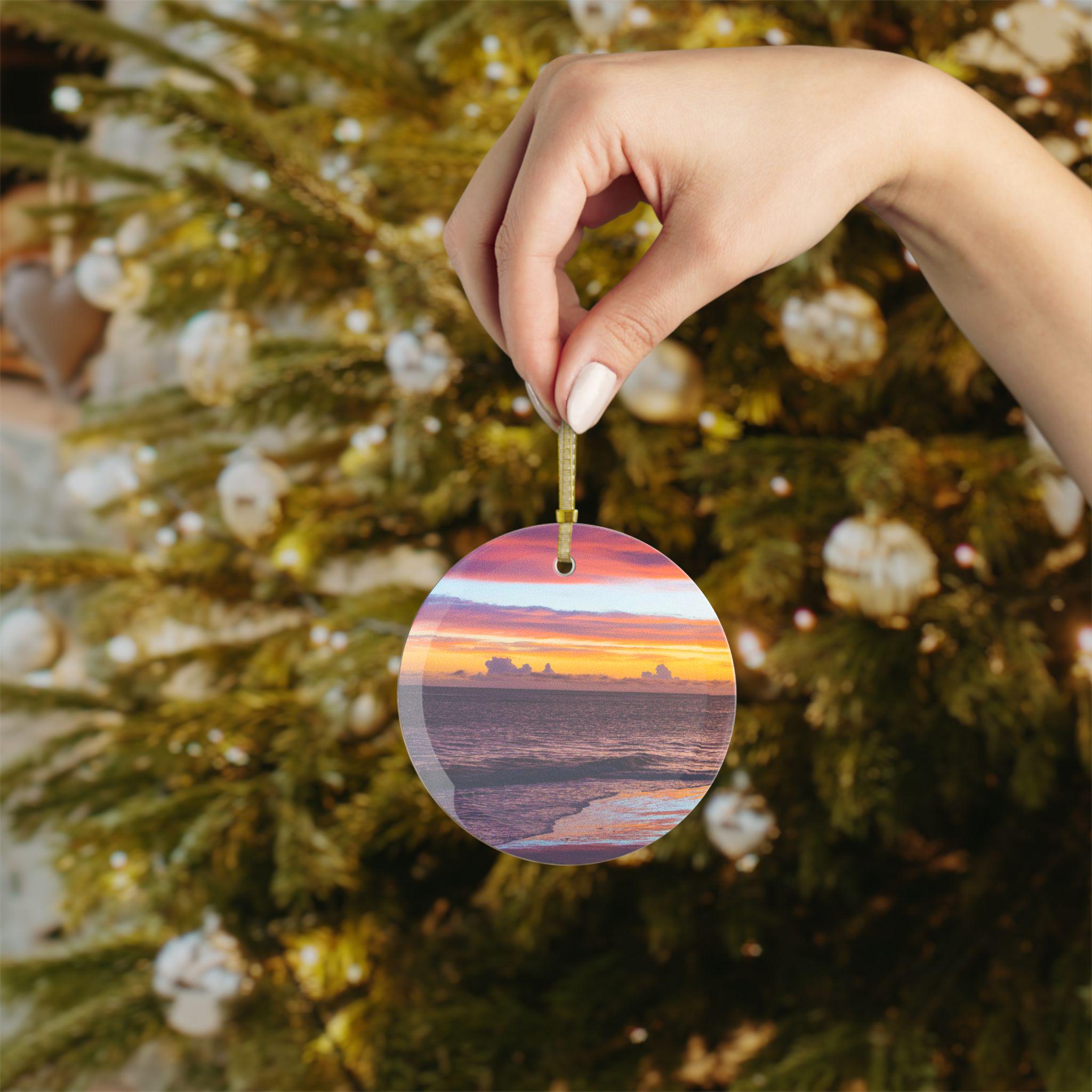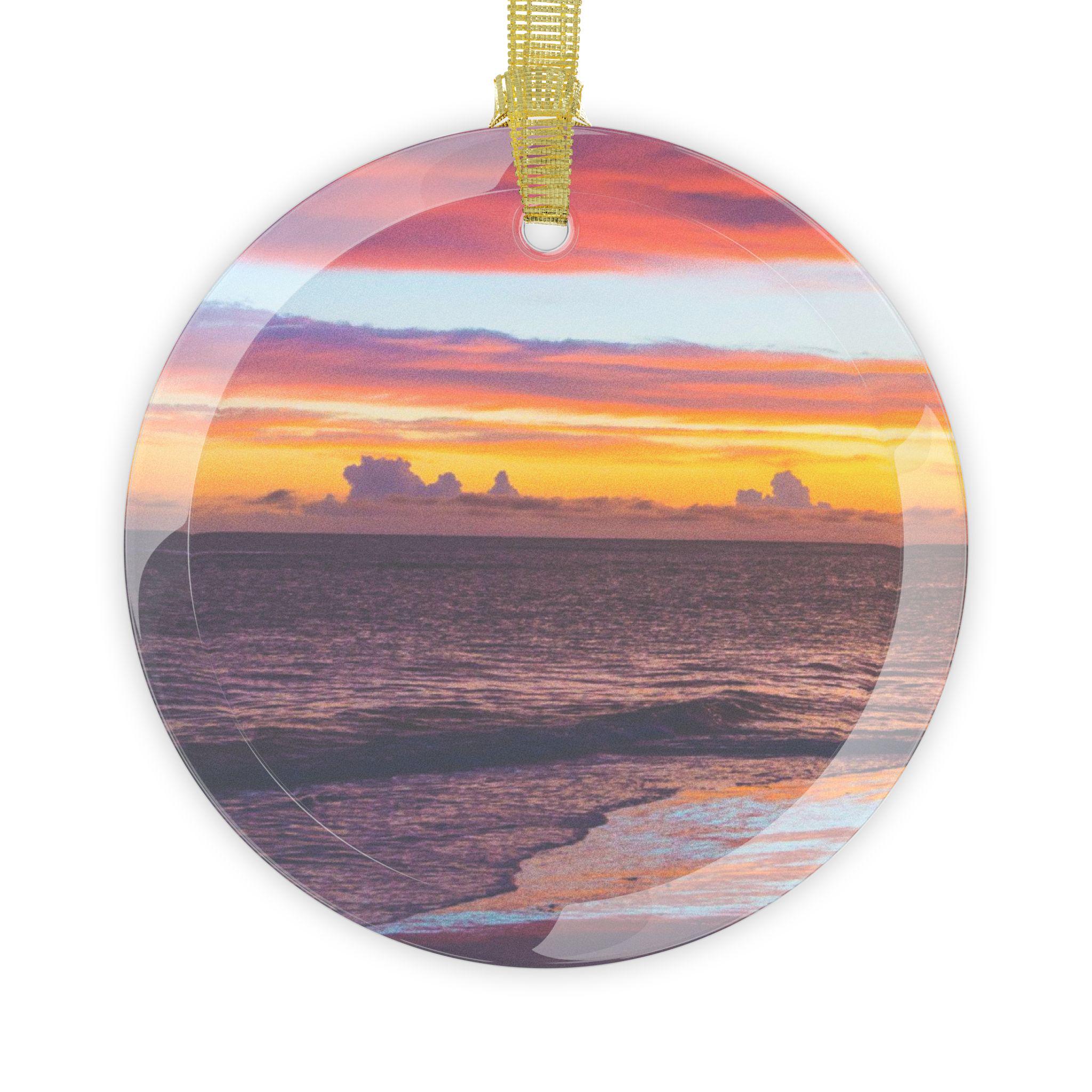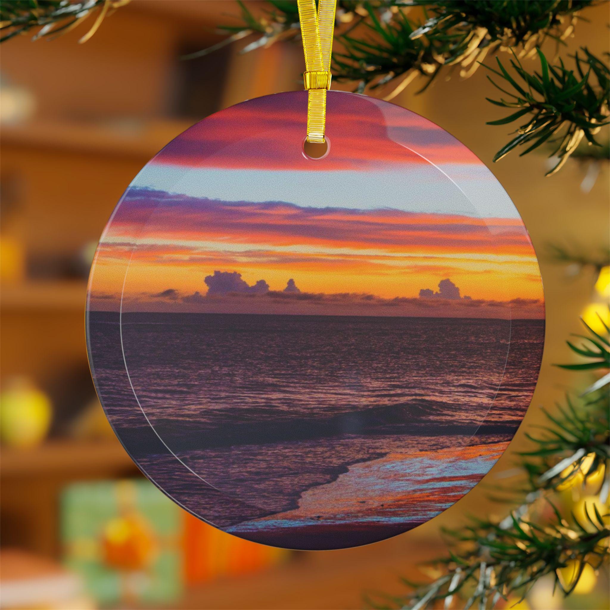 Cloudscape ocean inspired Christmas ornaments with vibrant colors, perfect for adding a festive touch to your holiday decor. These glass ornaments are relevant to those celebrating Christmas and looking for unique decorations.