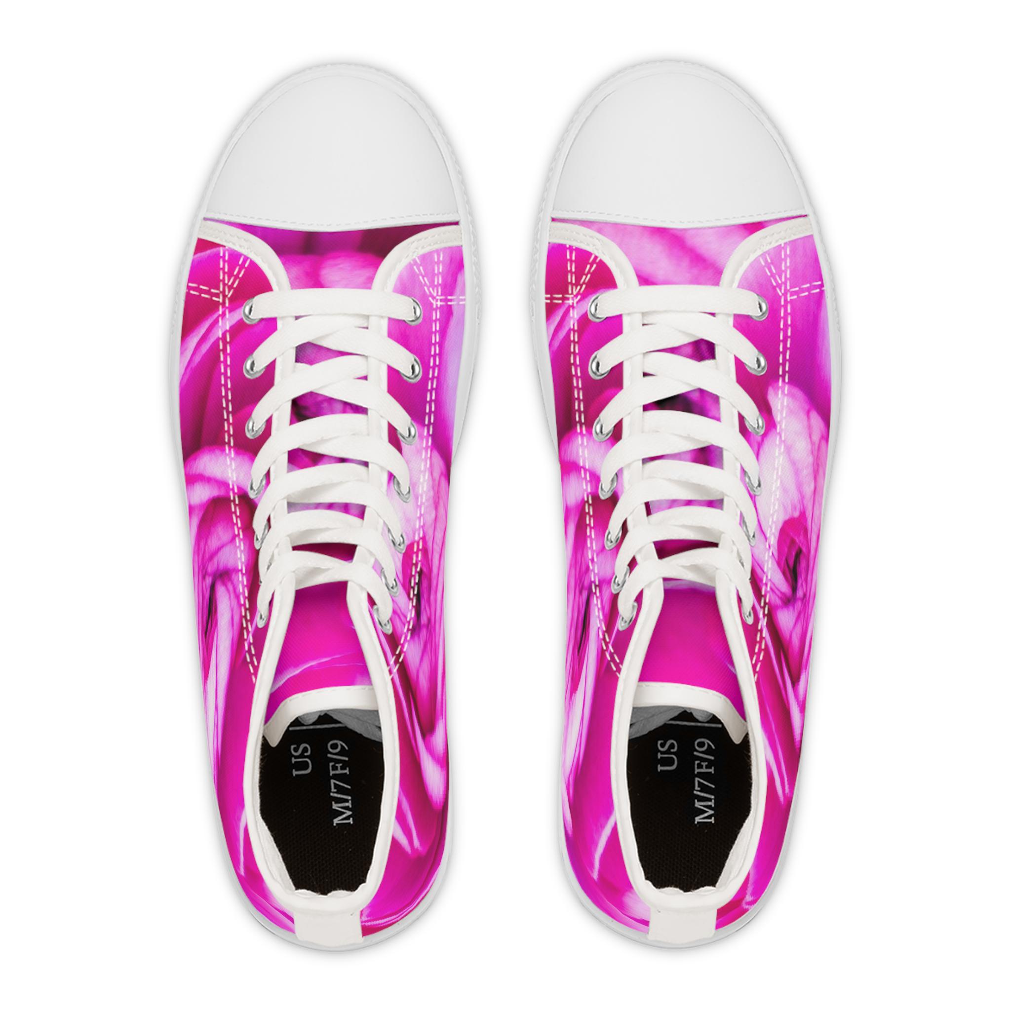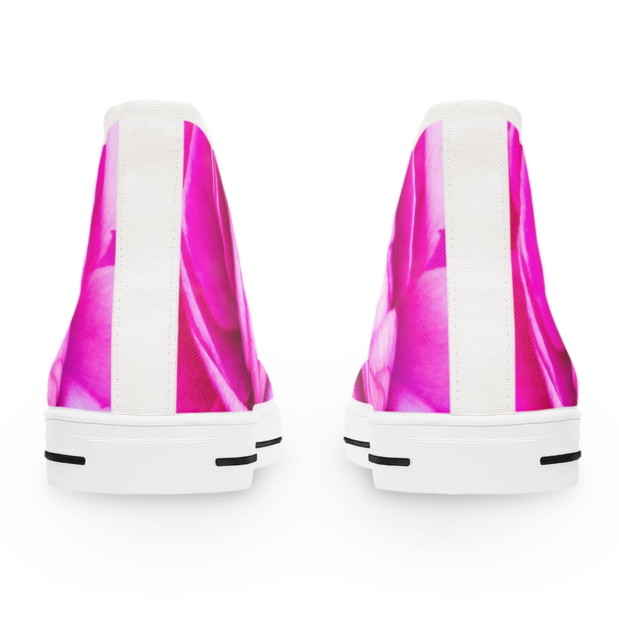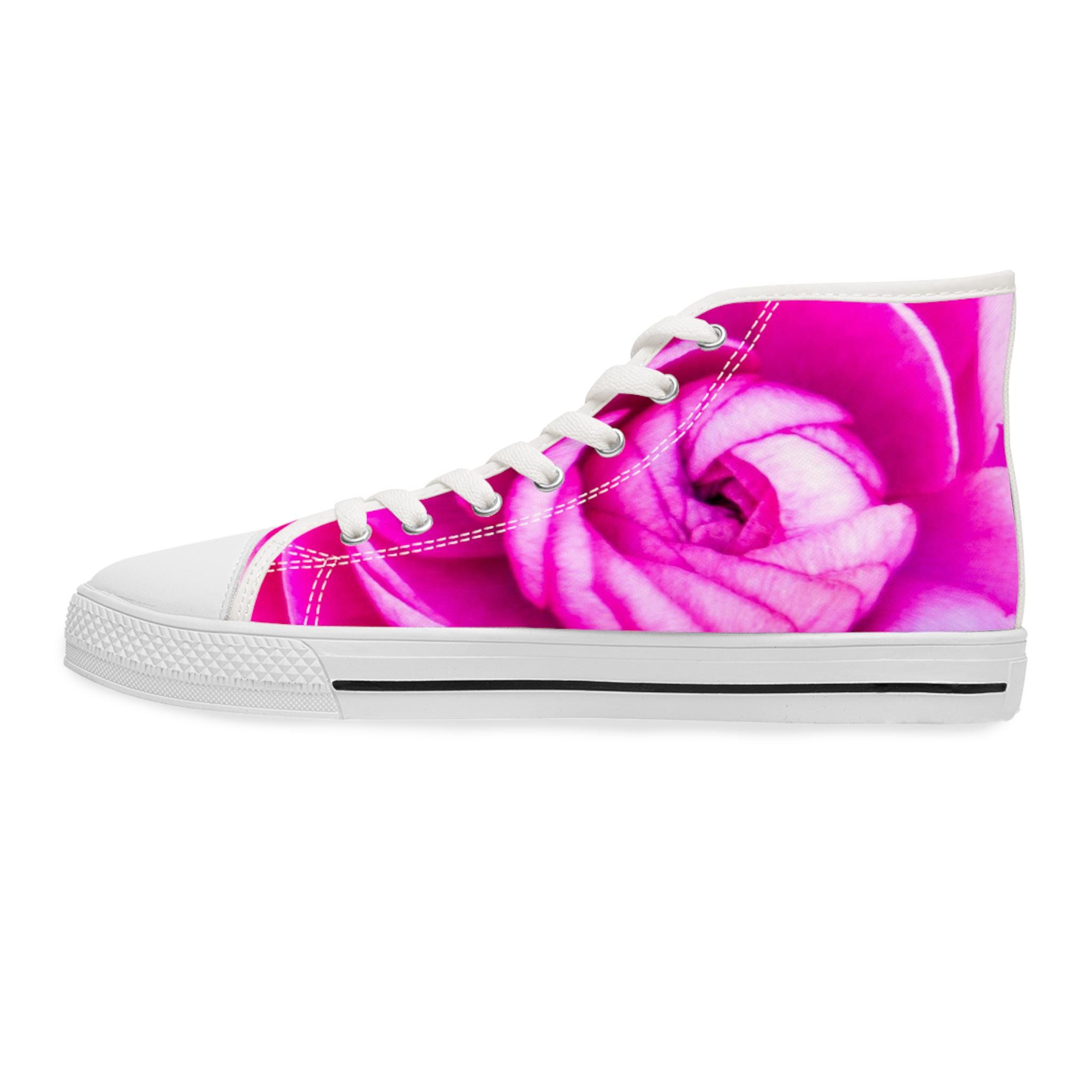 These Pink Rose Women's High Top Sneakers are perfect for the athletic woman who loves adding a touch of femininity to her sporty style. The pink flower design gives off a playful and energetic vibe, making these sneakers ideal for casual outings and everyday wear. Perfect for women who enjoy floral patterns and want to stand out in a crowd. Great for spring and summer fashion, as well as outdoor activities and casual gatherings.