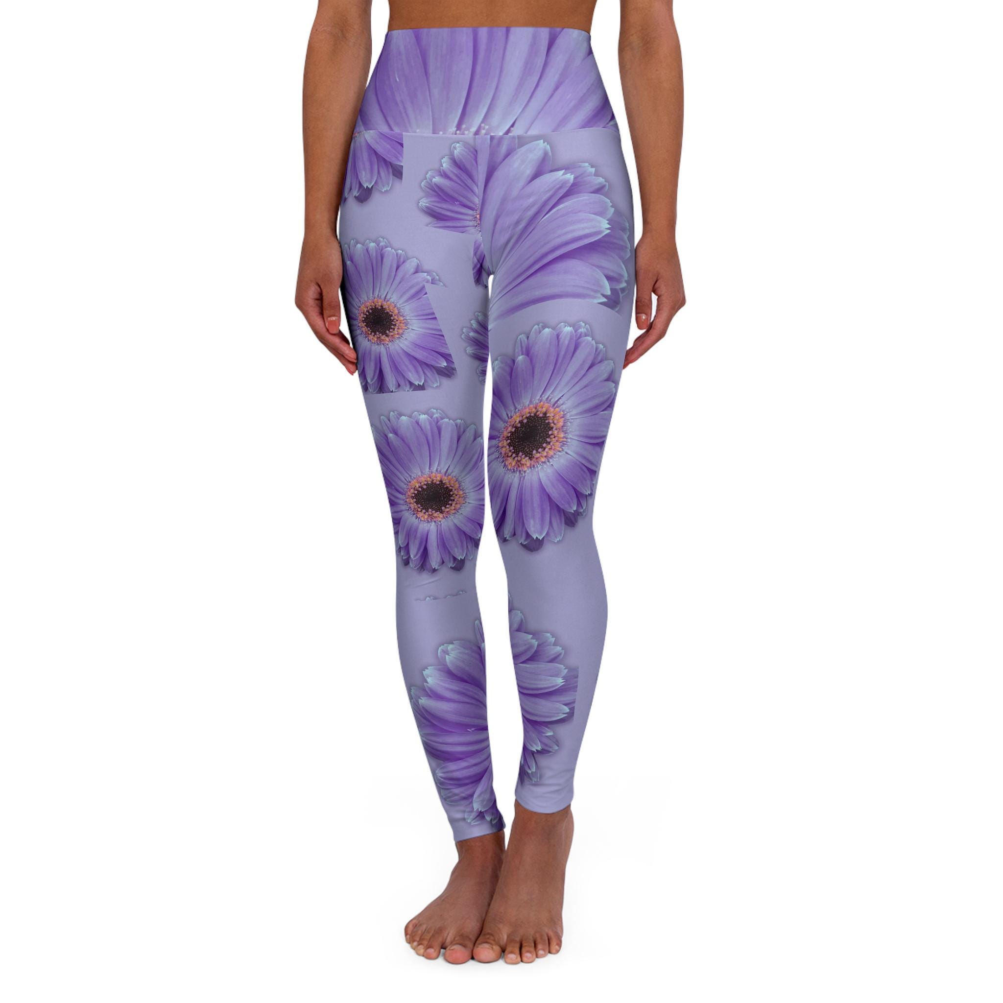 Floral High Waisted Leggings, Lilac Floral Yoga Pants for Women, Namaste Workout Tights, Yoga Leggings, Fitness Apparel, Gift for Her...