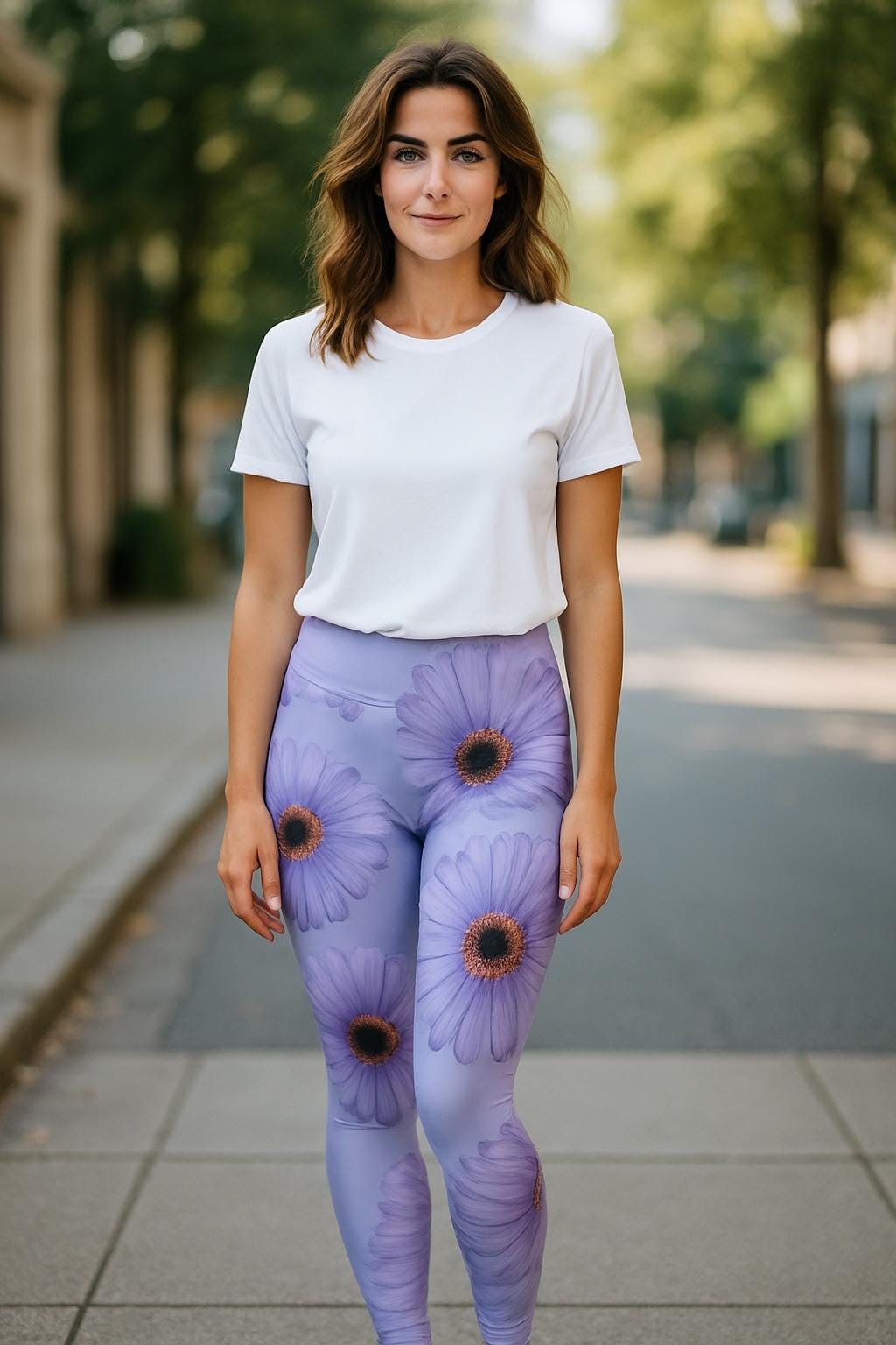 These Gerber Daisy Women's High Waisted Yoga Leggings in lilac with a floral design are perfect for yoga lovers and those who appreciate a touch of nature in their activewear. The high-rise waist and 4-way stretch fabric provide both style and comfort, making them ideal for yoga sessions or casual wear. Namaste in style with these vibrant and durable leggings. This one of a kind design was created from a moment on Martha's Vineyard, MA.