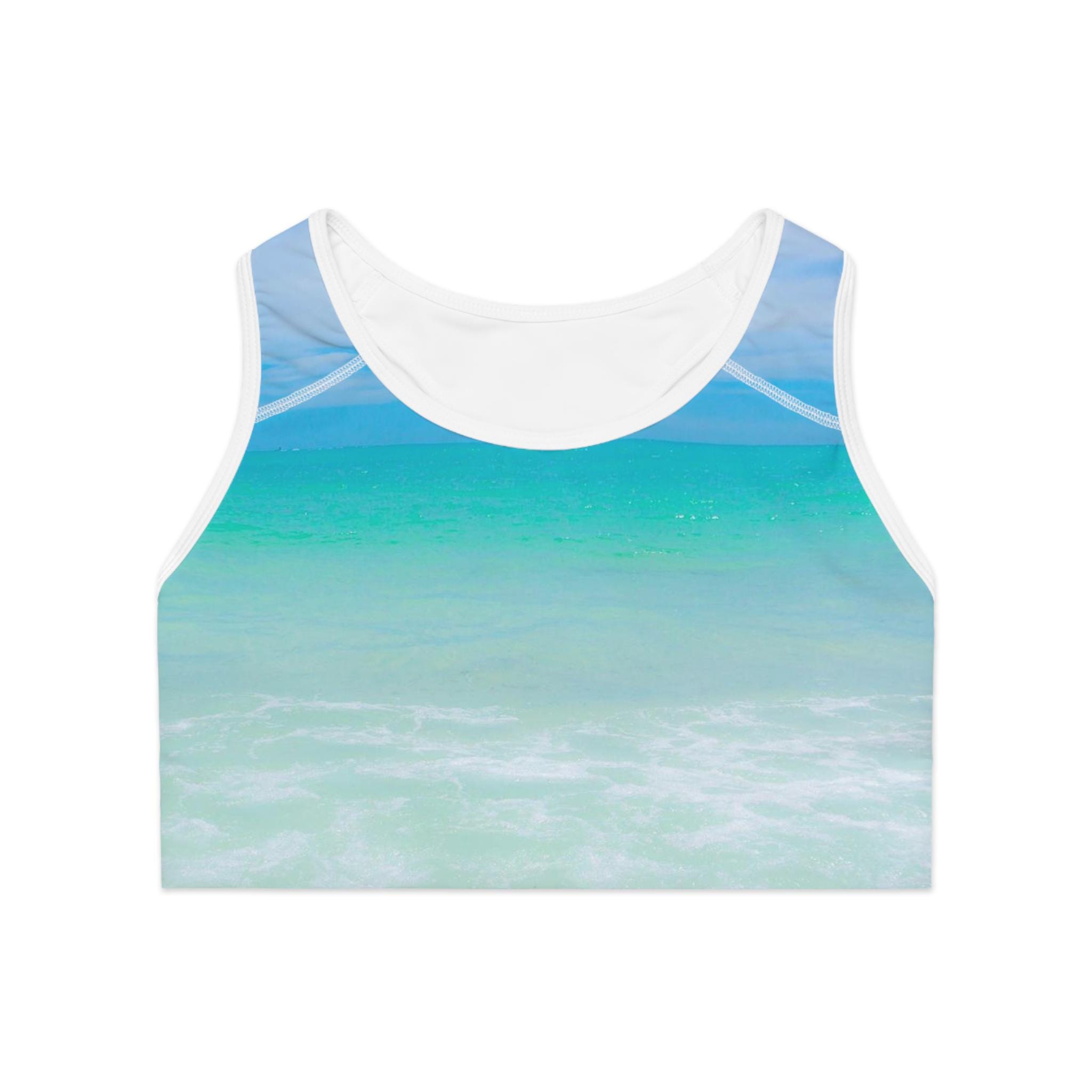 Stay cool and comfortable during your yoga sessions with this Ocean Inspired Women's Sports Bra. The blue ice design adds a calming vibe to your workout routine. Perfect for yoga enthusiasts and fitness lovers, this sports bra is made with moisture-wicking material to keep you dry and comfortable. Ideal for yoga accessories and workout gear, this compression fit sports bra provides support and fit with a double-layer front and wide elastic band. This beautiful design Cotton Candy Sky was created on Longboat Key, FL.