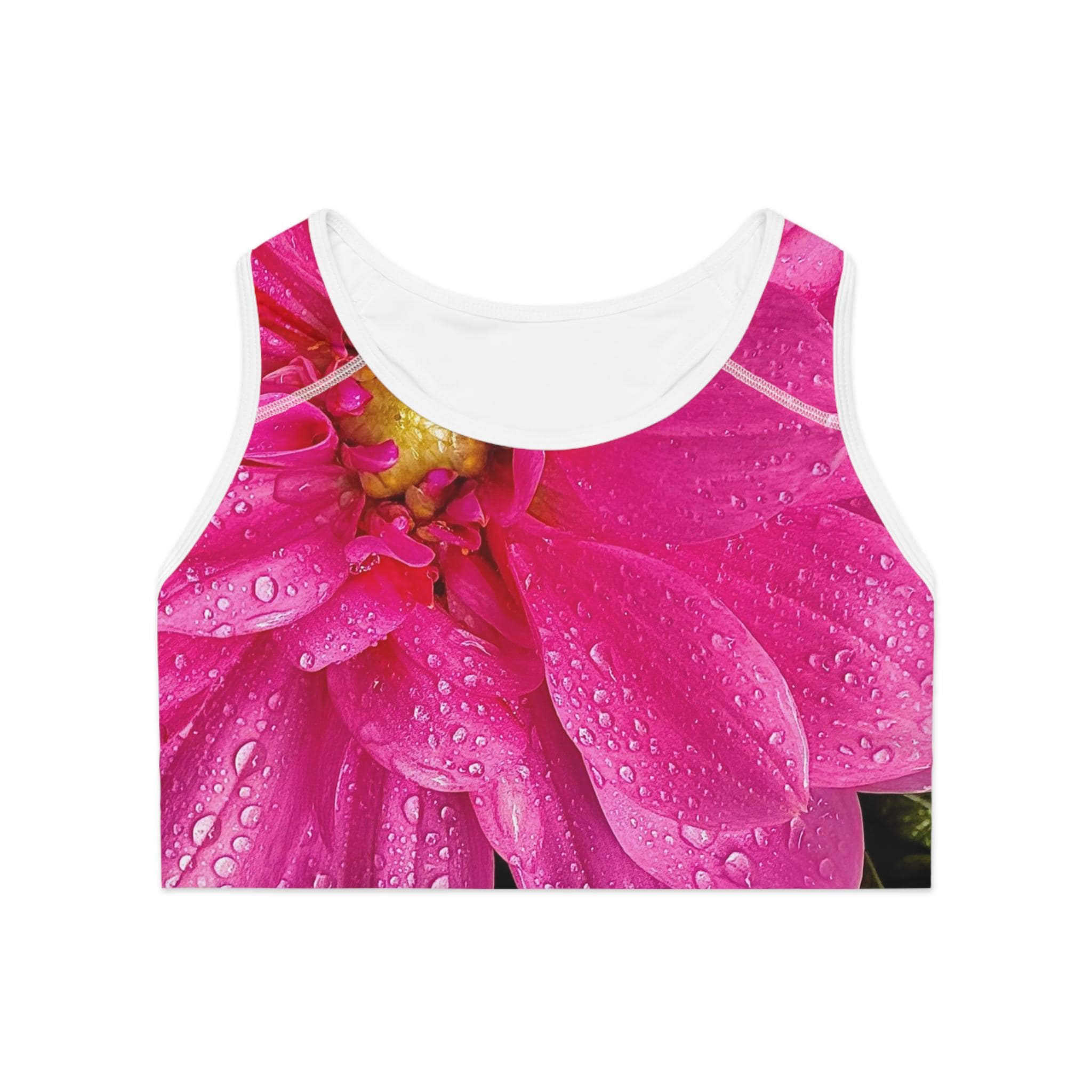 Embrace elegance and functionality with our Pink Ranunculus Floral Sports Bra. Featuring a vibrant ranunculus print, this compression-fit bra offers both style and support, making it perfect for yoga, workouts, or everyday wear. Crafted from a moisture-wicking polyester-spandex blend, it ensures comfort and durability.