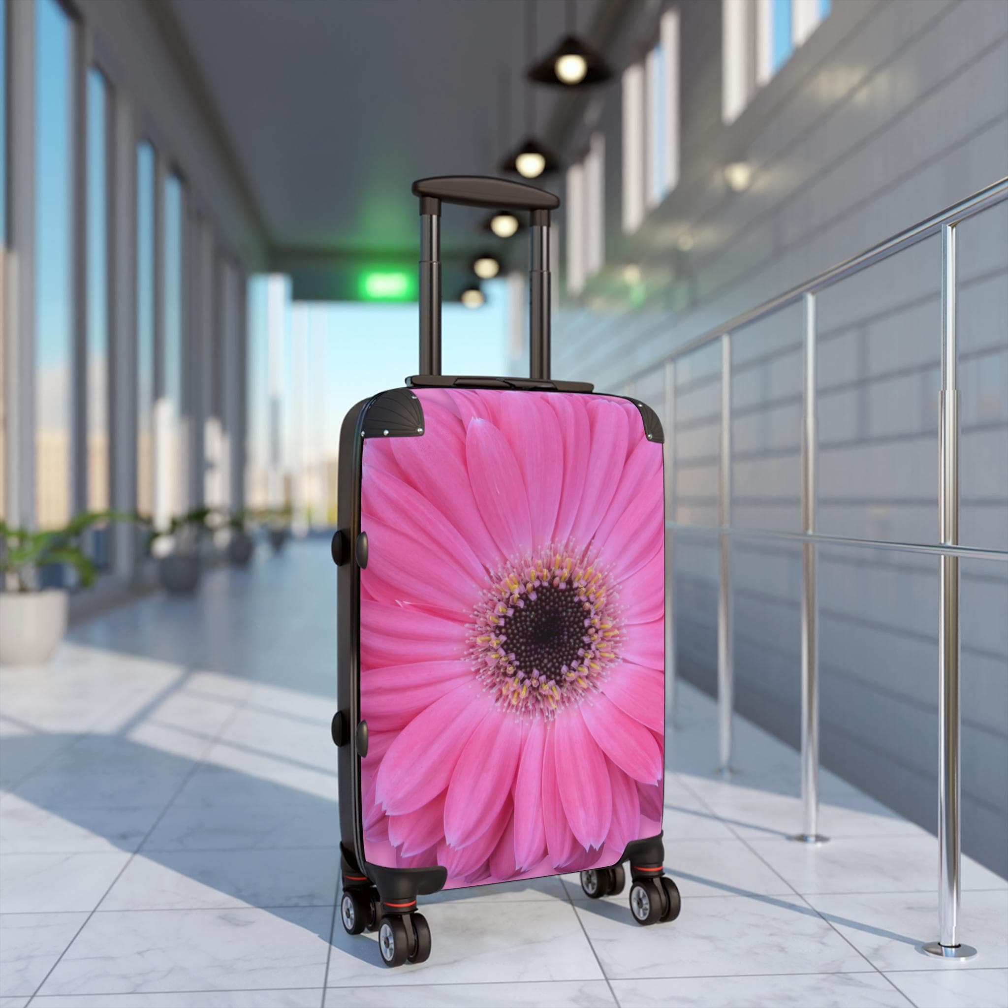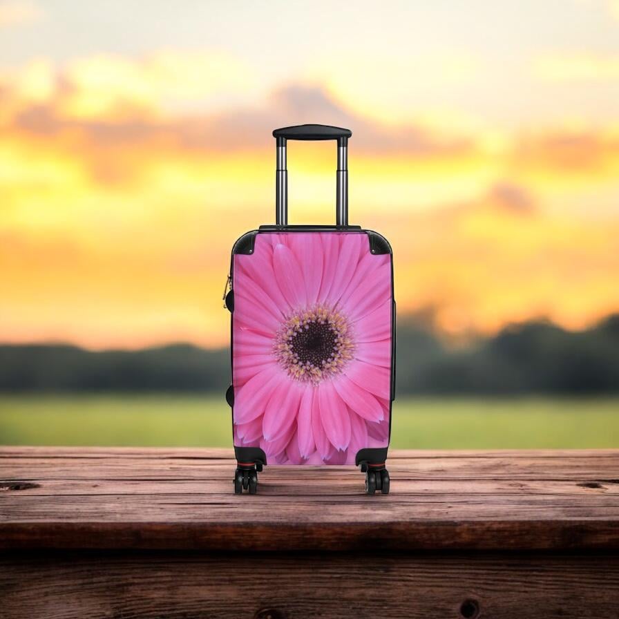 Pink Floral Travel Luggage Suitcase – Gerber Daisy Design for Women. Travel in style with this chic pink floral suitcase, featuring a vibrant Gerber daisy print. Perfect for women who love unique, eye-catching travel accessories. Lightweight, durable, and TSA-approved – your ideal travel companion!