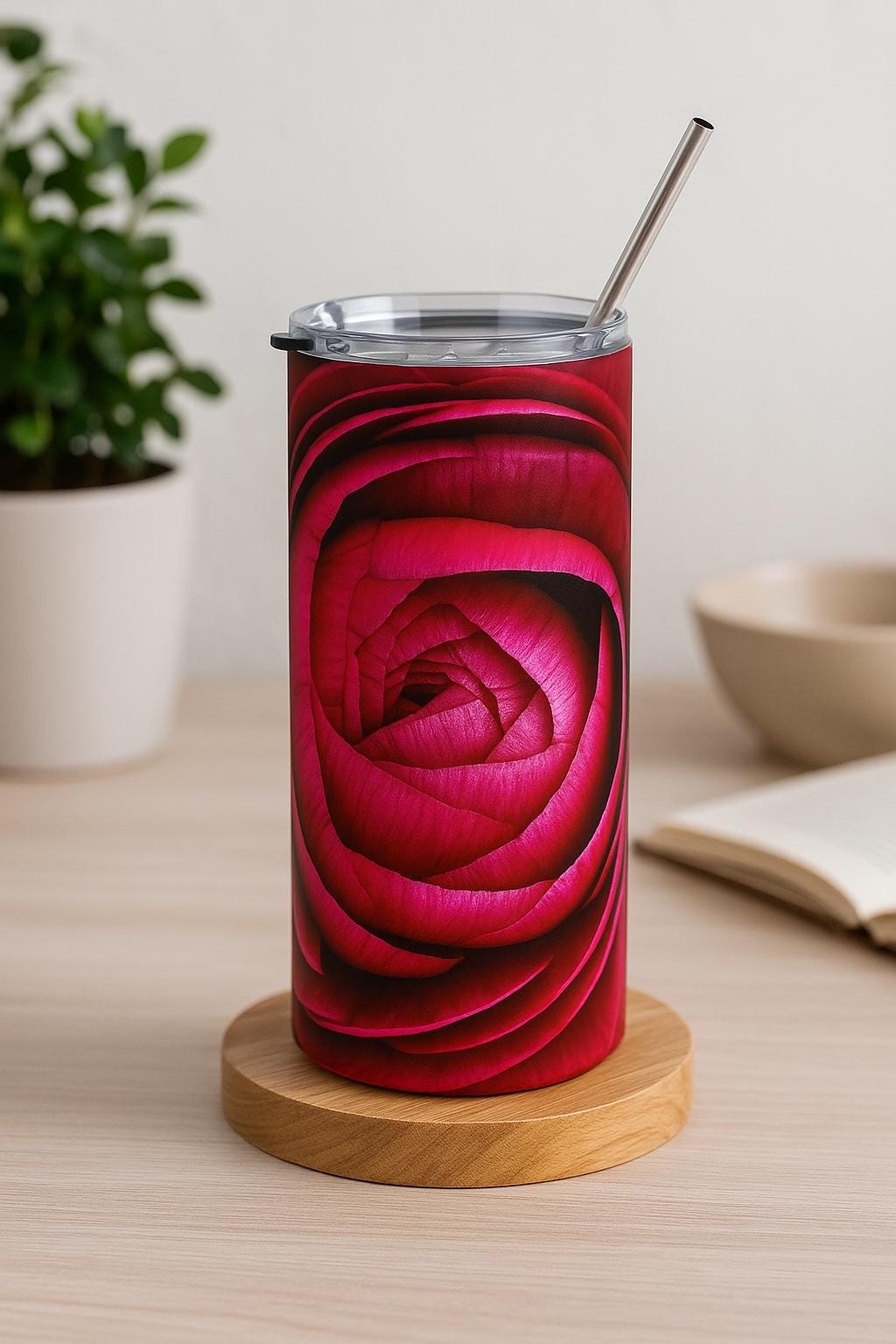 This Pink Ranunculus Stainless Steel Tumbler is a beautiful and practical floral travel mug. It makes the perfect gift for her or for yoga lovers. The glossy finish adds a touch of elegance to your daily routine, and the durable stainless steel material ensures longevity. Ideal for any occasion, from birthdays to springtime!