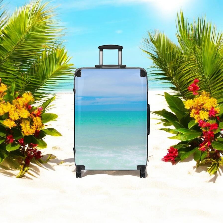 Blue Ocean Tropical Suitcase, Travel Nautical Luggage, Beach Vacation Luggage, Travel Accessories, Gift for Her, Extended storage