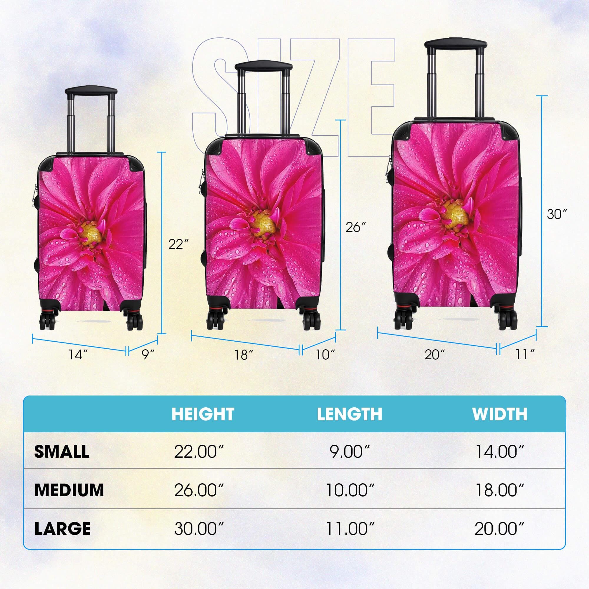 Introducing this Pink Chrysanthemum Floral stunning suitcase that combines functionality with eye-catching design. Featuring vibrant colors, this suitcase is perfect for the stylish traveler who wants to make a statement. Whether you're heading off on a weekend getaway or an extended vacation, this suitcase is designed to meet all your travel needs without compromising on style. Ideal for anyone who loves to travel, especially those who appreciate unique and customizable accessories. It makes a perfect gift for holidays, birthdays, or even as a special treat to yourself for the next adventure. This beautiful design was created on Martha's Vineyard, MA