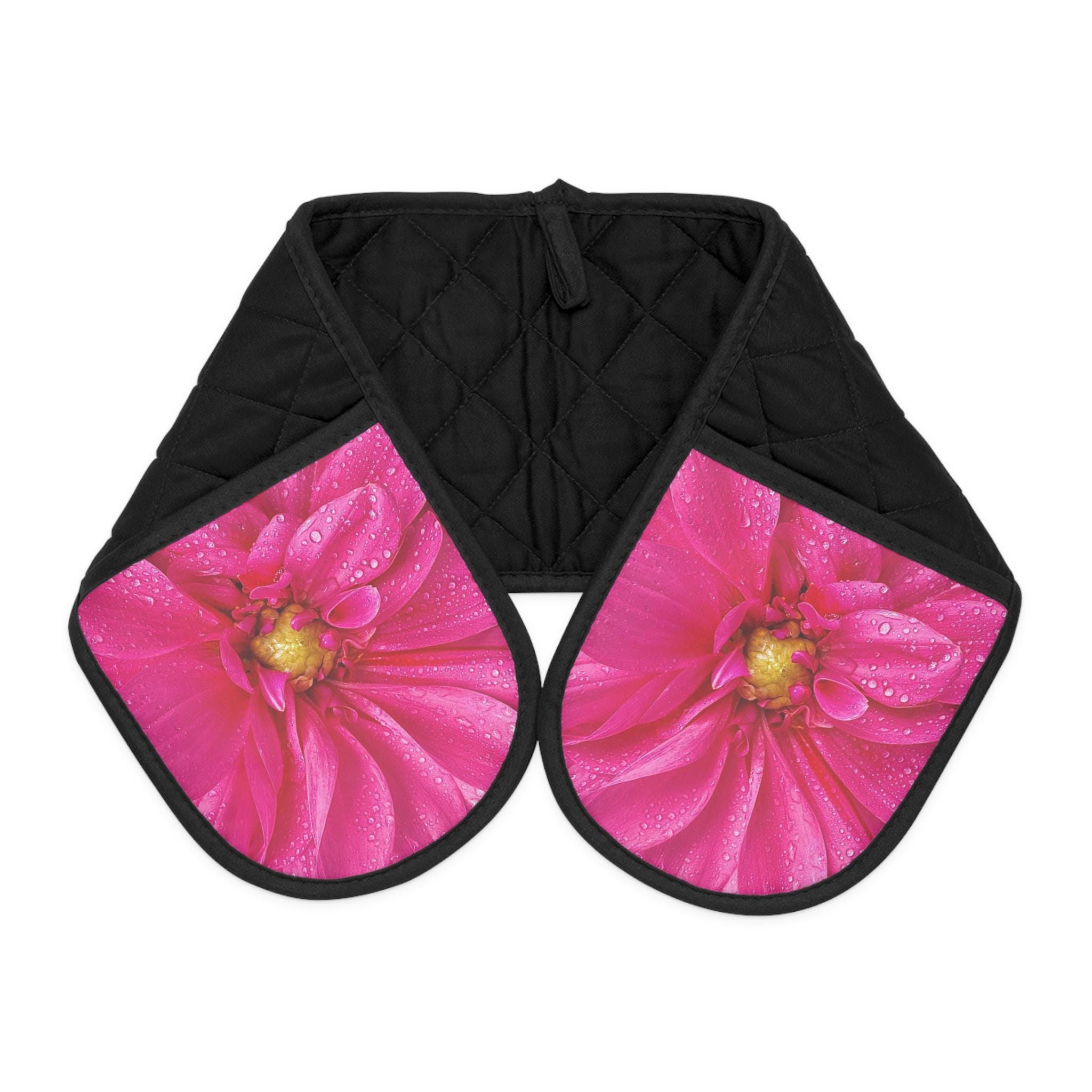Pink Chrysanthemum Oven Mitt designed as a stylish and practical chef's accessory. This heat-insulated and lightweight oven mitt features a slip-resistant design, 96% polyester and 4% elastane front with 100% cotton underside for durability, and a convenient hanging loop. Perfect for anyone who loves floral designs and enjoys cooking and baking, it's ideal for use during holidays, celebrations, and everyday kitchen tasks.