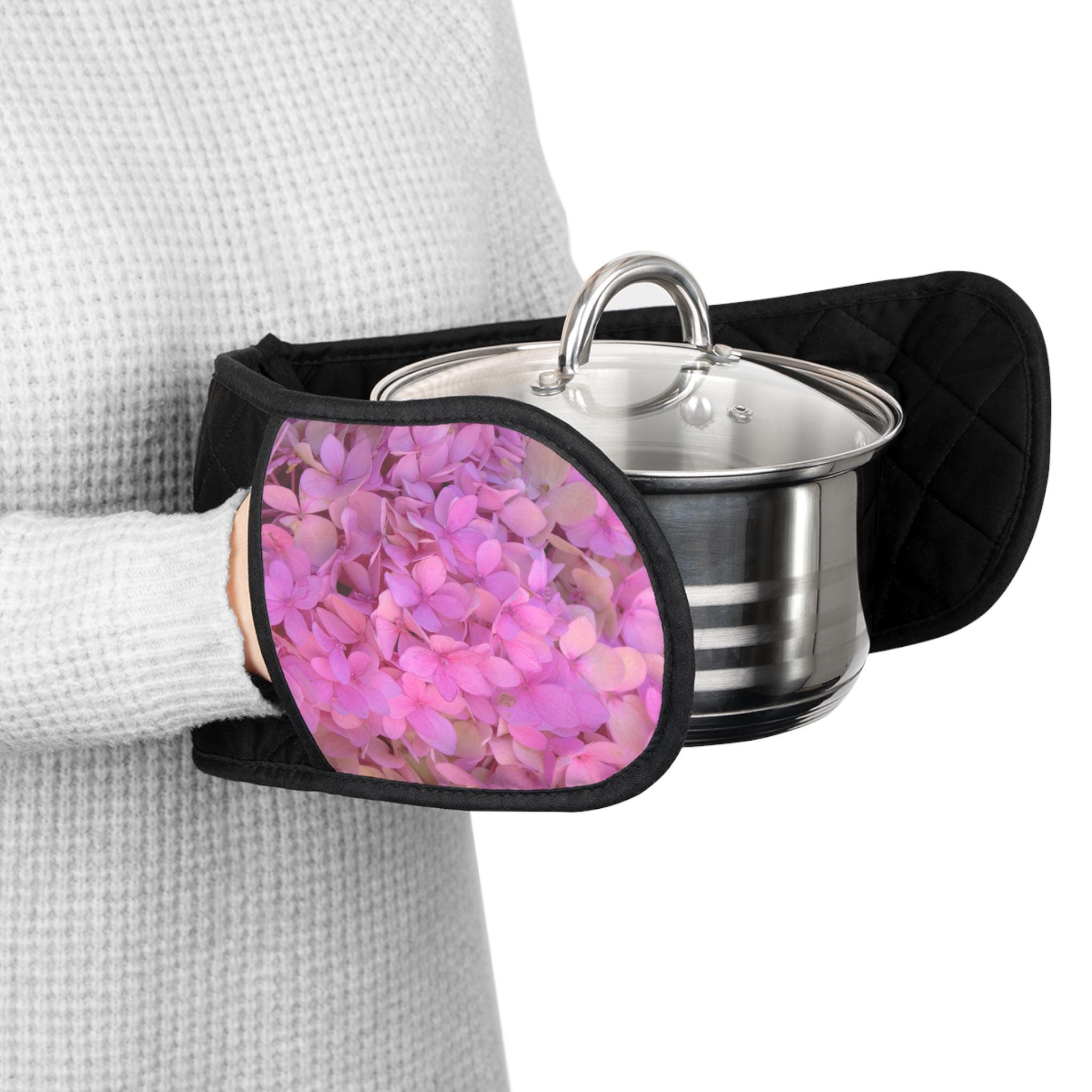 These Pink Hydrangea Chic Floral Oven Mitts are perfect for home cooks and chefs. The heat-insulated material will protect your hands from hot objects while the lightweight and soft fabric ensures comfort. With a hanging loop for easy storage, these mitts are both functional and stylish, adding a touch of floral elegance to your kitchen. Ideal for those who love to cook and bake, these oven mitts are perfect for everyday use or as a thoughtful gift for a special occasion, Holiday Gift, Birthday, Mother's Day and more!