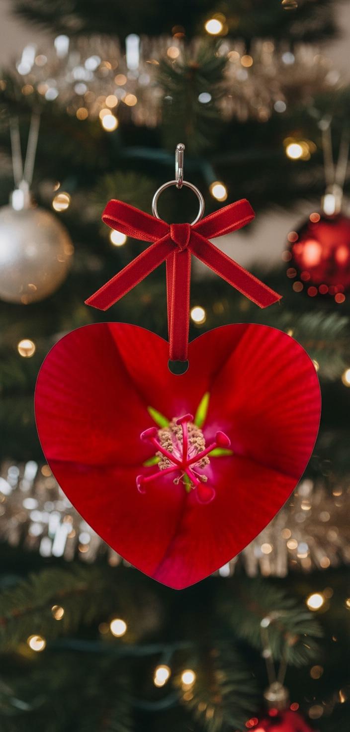 A radiant crystal ornament that catches and refracts light like a held breath. The ruby orchid heart design feels intimate and floral — a jewel-toned bloom suspended in glass. Hung from its included ribbon, this piece settles into small, quiet spaces: a windowsill that catches morning sun, a mantel threaded with memories, or a holiday tree that favors thoughtful keepsakes. The heart shape reads as a quiet declaration; the circle feels more meditative. Both shapes present the engraved motif on one face while allowing the image to glow through from the back, so the design shifts as light moves. It’s weighty in the hand yet delicate in appearance, the kind of ornament that becomes part of a room’s personality and the stories you tell in winter light. This is a beautiful ornament!